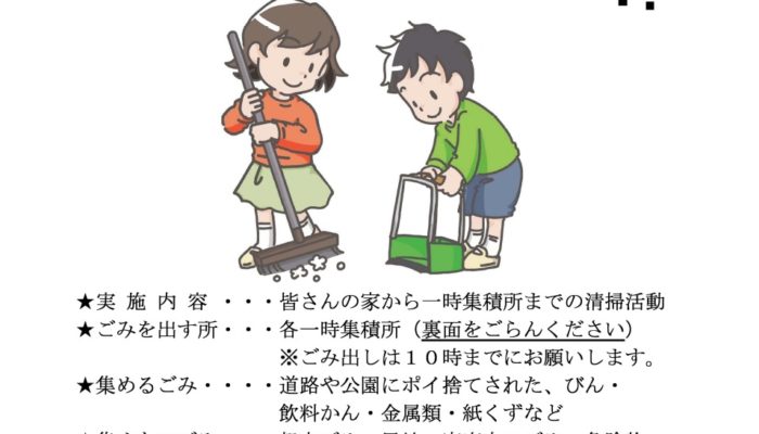 川口市一斉クリーン作戦実施! 2024年10月28日 下戸塚町会スタッフ 今月の回覧板, 衛生部 ご自宅から最寄りの(戸塚体育館、南公園)の集積所まで の区間清掃をお願いします。 <綺麗な住みよい町会を目指しましょう!> 2924.全市一斉クリーンタウン作戦チラシダウンロード コメントを残す コメントをキャンセルメールアドレスが公開されることはありません。 ※ が付いている欄は必須項目ですコメント ※ 名前 ※ メール ※ サイト 次回のコメントで使用するためブラウザーに自分の名前、メールアドレス、サイトを保存する。