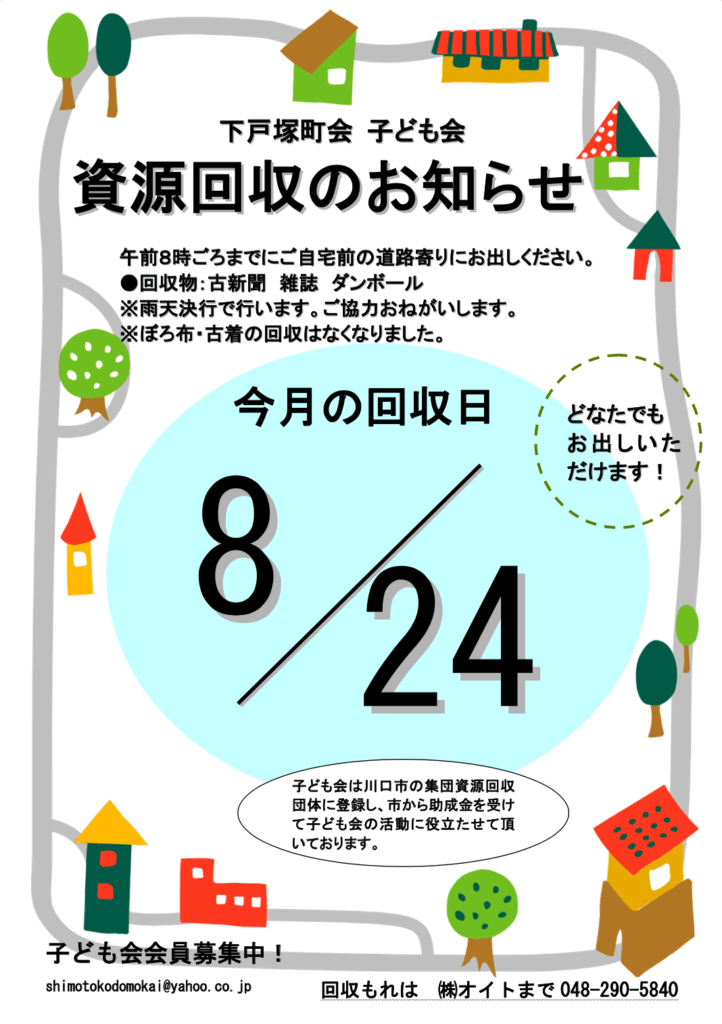📦8月資源回収日のお知らせ📦